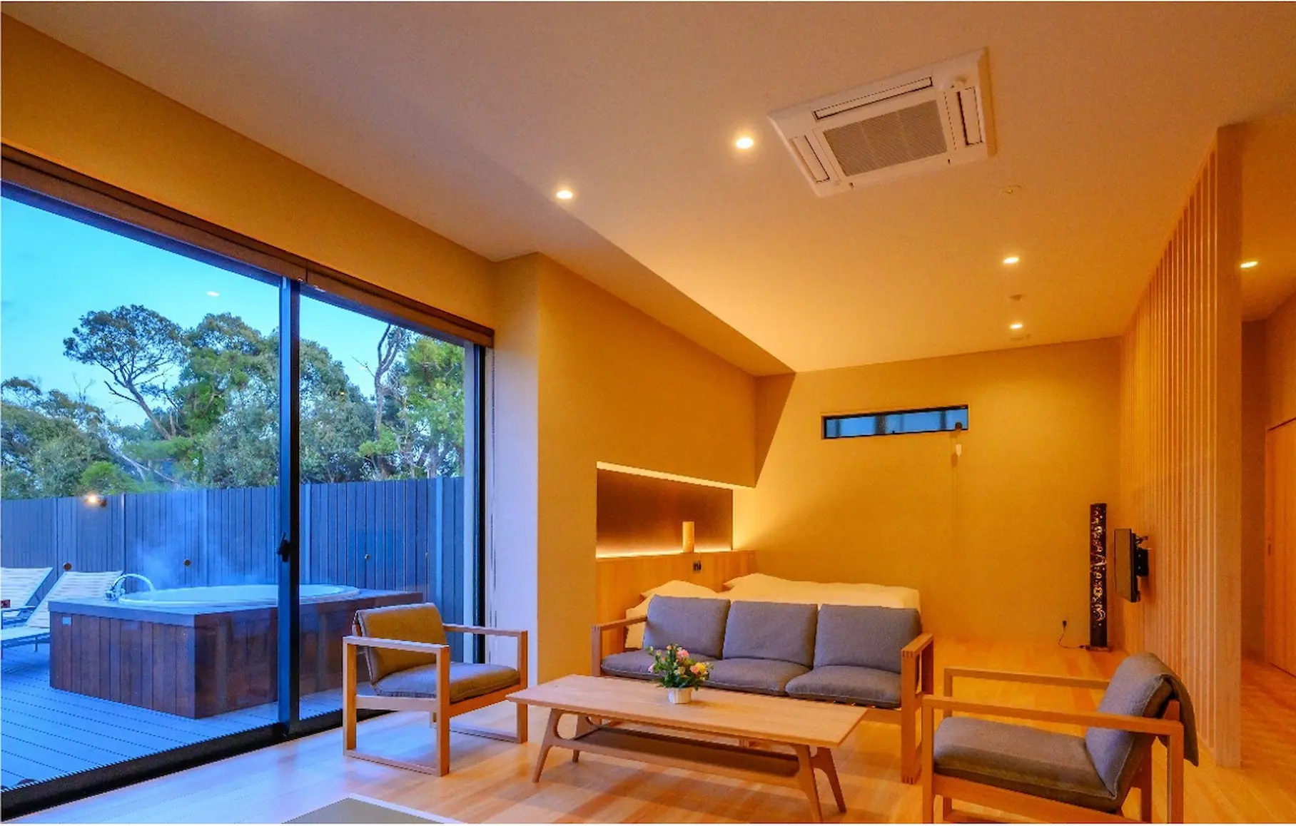 熊野の山々の風景に溶け込む贅沢なひと時。